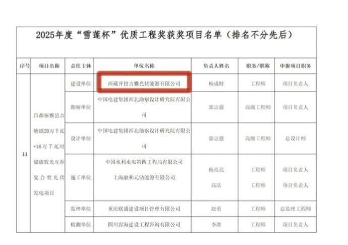 8月7日,西藏自治區(qū)住房和城鄉(xiāng)建設廳公布2025年度“雪蓮杯”優(yōu)質(zhì)工程獲獎項目名單,由西藏開投吉雅光伏公司投資建設的昌都察雅縣吉塘鎮(zhèn)20萬千瓦+16萬千瓦時儲能牧光互補復合型光伏發(fā)電項目榮獲該獎項。