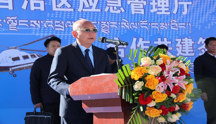 洪力代表區(qū)應(yīng)急管理廳對(duì)西藏民航投為自治區(qū)航空應(yīng)急救援所作出的突出貢獻(xiàn)表示感謝。他指出,此次簽約授牌儀式,是深入學(xué)習(xí)貫徹習(xí)近平總書記關(guān)于應(yīng)急救援體系建設(shè)重要指示精神,全面落實(shí)自治區(qū)黨委、政府加強(qiáng)航空應(yīng)急救援力量建設(shè)的重要舉措,希望雙方凝聚共識(shí)、形成合力,著眼我區(qū)自然災(zāi)害和事故災(zāi)難特點(diǎn),本著“資源共享、共建共用、協(xié)同應(yīng)對(duì)、一體聯(lián)動(dòng)”的原則,以救援任務(wù)需要為導(dǎo)向,以救援能力提高為核心,立足現(xiàn)有資源,著眼長(zhǎng)遠(yuǎn)發(fā)展,突出優(yōu)勢(shì)互補(bǔ),強(qiáng)調(diào)實(shí)訓(xùn)實(shí)戰(zhàn)。
