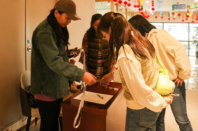 活動開始前,員工及家屬陸陸續(xù)續(xù)開始簽到入場。在簽到處的旁邊還設置了打卡區(qū),員工及家屬紛紛在此打卡留念。
