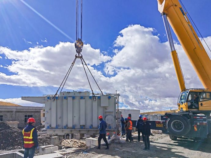 色尼區(qū)達(dá)嘎普獨(dú)立儲能項目svg預(yù)制艙吊裝。吳昊澄 攝