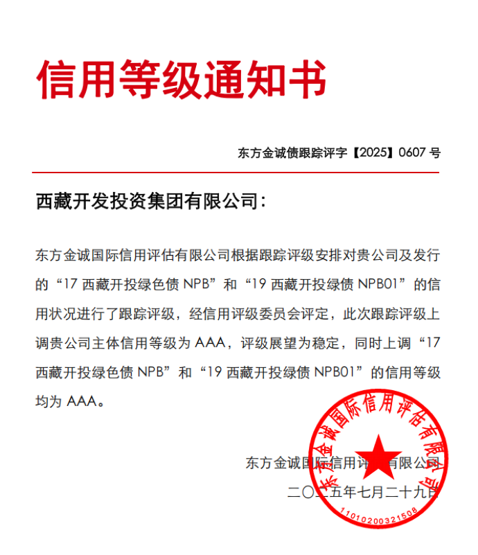 西藏首家!西藏開投集團(tuán)獲評AAA主體信用等級