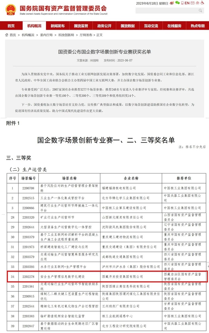 捷報(bào)傳來丨西藏開投集團(tuán)榮獲國企數(shù)字場(chǎng)景創(chuàng)新專業(yè)賽生產(chǎn)運(yùn)營類三等獎(jiǎng)