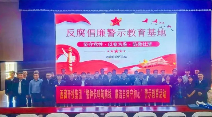 為扎實開展深入貫徹中央八項規(guī)定精神學(xué)習(xí)教育,堅定不移推進全面從嚴(yán)治黨向縱深發(fā)展,筑牢黨員干部職工拒腐防變思想堤壩,6月26日,西藏開投集團組織黨員干部職工赴西藏自治區(qū)監(jiān)獄管理局廉政警示教育基地開展“警鐘長鳴筑防線,廉潔自律守初心”警示教育活動。集團黨委委員、副總經(jīng)理溫勇、尼瑪與集團總部、所屬單位黨員干部職工共70余人參加活動。
