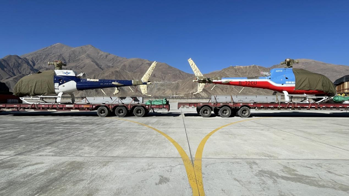 2023年1月9日15時30分,隨著兩輛運輸車緩緩駛?cè)胛鞑貞本仍?,喜馬拉雅通航新引進的兩架AC311A直升機正式到位,至此機隊規(guī)模也增加到3架,將為提升西藏地區(qū)航空應急救援能力提供更加堅實有力的保障。
