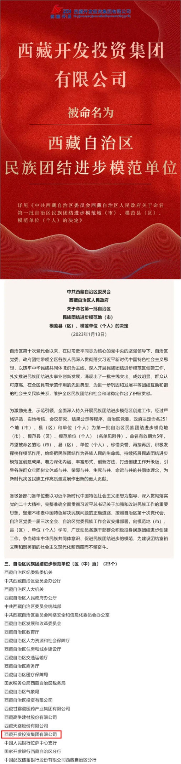 捷報(bào)傳來(lái) _ 西藏開投集團(tuán)被命名為“西藏自治區(qū)民族團(tuán)結(jié)進(jìn)步模范單位”
