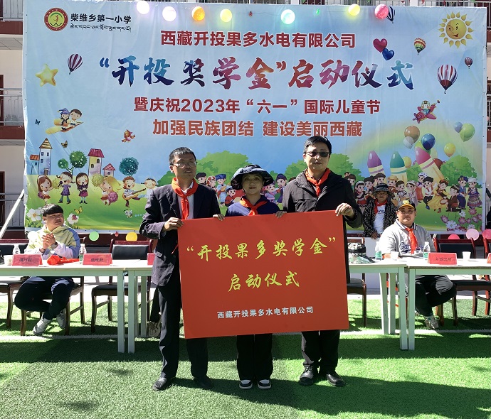 活動現(xiàn)場舉行了“開投果多獎學金”啟動儀式及凈水設(shè)備捐贈儀式。果多水電公司董事長、總經(jīng)理宋亞東表示,“開投果多獎學金”的設(shè)立,旨在獎勵品學兼優(yōu)的學生,鼓勵大家努力學習,奮發(fā)向上,努力成長為國家的棟梁之材。柴維鄉(xiāng)小學校長代表全校師生對果多水電公司融入地方經(jīng)濟社會發(fā)展、支持教育事業(yè)、積極承擔社會責任的善舉表示衷心的感謝,并希望同學們將善舉轉(zhuǎn)化為學習、前進的強大動力,努力學習,勵志成才,以優(yōu)異的成績回報社會,努力成為對社會有用的人才。