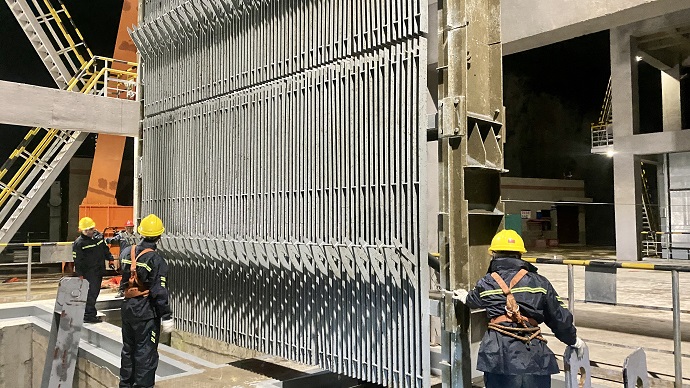 7月13日,受上游來水影響,金橋水電站迎來2023年入汛最大流量,大量樹枝、雜草等堆積在電站進水口攔污柵上,攔污柵前后壓差不斷增大。7月14日凌晨,為確保機組安全穩(wěn)定運行,金橋水電公司連夜組織人員對進水口攔污柵進行清理。