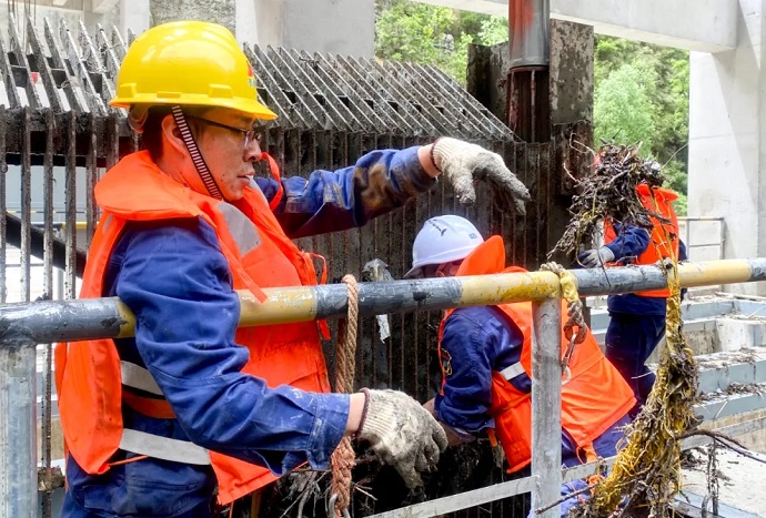 5月31日,金橋水電公司聞“汛”而動,迅速投入到攔污柵清污工作中。大家分工合作,相互配合,通過采取多種方法,經(jīng)過6個(gè)小時(shí)的辛勤勞作,清除了兩孔攔污柵全部堵塞物,確保了進(jìn)水口攔污柵“零”壓差,保障了金橋水電站的正常運(yùn)行和發(fā)電安全,同時(shí)也為2024年公司安全度汛奠定了基礎(chǔ)。