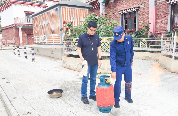 (液化氣火災(zāi)應(yīng)急處理實操 李瑞峰攝)