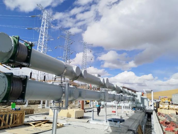 西藏開投色尼區(qū)達(dá)嘎普獨立構(gòu)網(wǎng)型儲能電站GIS安裝。(圖由中國電建集團(tuán)華東院提供)