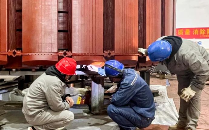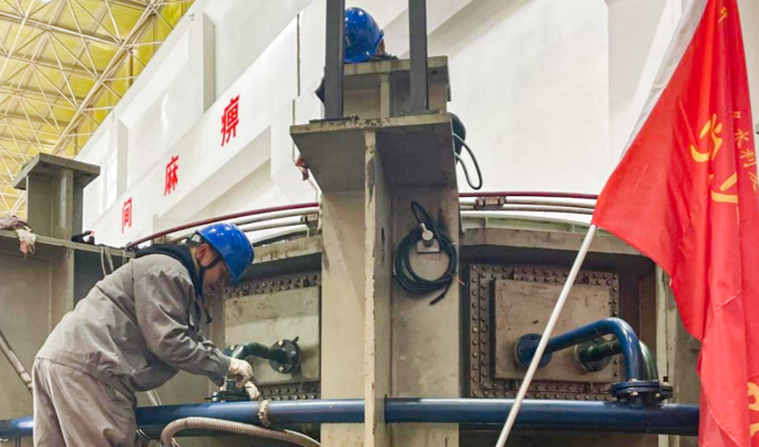 在檢修工作中黨員先鋒隊充分發(fā)揮專業(yè)優(yōu)勢,在精細檢修、精益求精中沖鋒在前,黨員技術(shù)骨干帶頭對重要部位、重要設(shè)備進行逐一檢查,測量相關(guān)數(shù)據(jù),對磨損部件提出修復(fù)意見和改造方案,切實提升設(shè)備性能;在電氣設(shè)備檢修過程中,黨員主動承擔(dān)勵磁系統(tǒng)、繼電保護裝置等檢測任務(wù),運用精密儀器進行全面絕緣檢測與參數(shù)調(diào)試,憑借豐富經(jīng)驗和精湛技術(shù),及時發(fā)現(xiàn)并處理多處潛在隱患點;在水工建筑物檢查方面,黨員積極協(xié)助開展蝶閥、盤型閥及尾水閘門等過水部件密封檢查,并對發(fā)電廠房尾水設(shè)施進行細致排查,經(jīng)檢查目前水工設(shè)施基本完好。