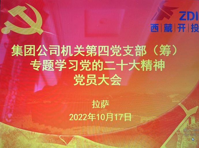 10月17日下午,中共西藏開發(fā)投資集團有限公司機關(guān)第四支部委員會組織全體黨員開展黨的二十大精神首次專題學習,重點學習討論黨的二十大報告。集團公司黨委委員、副總經(jīng)理、工會主席、機關(guān)黨委書記溫勇同志以普通黨員身份參加學習。