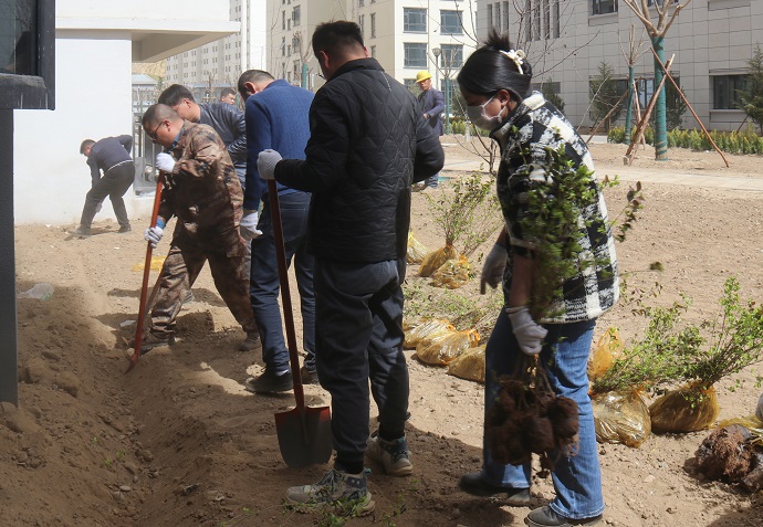 活動(dòng)現(xiàn)場(chǎng),在聽(tīng)取工作人員講解植樹(shù)注意事項(xiàng)后,大家三五一組、分工協(xié)作,有的揮鍬鏟土、填苗澆水,有的培土圍堰、澆水灌溉,還有的清掃垃圾、搬運(yùn)雜物?,F(xiàn)場(chǎng)氣氛活躍、組織有序,呈現(xiàn)出一片熱火朝天的忙碌景象。每道工序一絲不茍、認(rèn)真細(xì)致,展現(xiàn)了團(tuán)結(jié)協(xié)作、奮發(fā)向上的精神風(fēng)貌。
