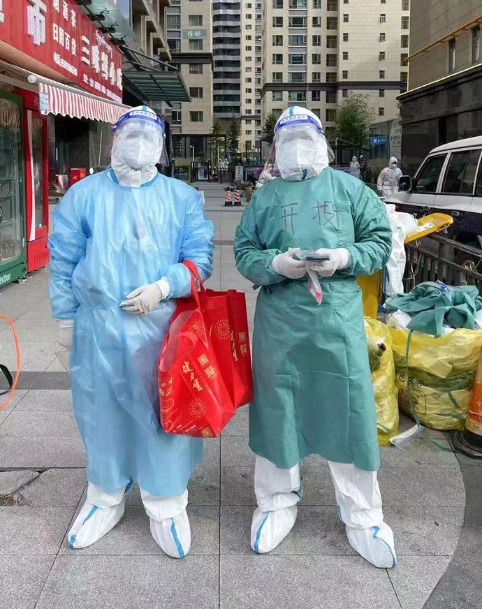 積極參加社區(qū)疫情防控工作。為積極響應(yīng)區(qū)政府國資委《關(guān)于配合做好疫情防控工作的緊急通知》有關(guān)要求,置業(yè)公司丁宗平、張峰偉兩名青年職工,經(jīng)所在單位同意,并向集團(tuán)公司疫情防控辦備案后,積極參加柳梧新區(qū)管委會(huì)組織的社區(qū)志愿服務(wù)活動(dòng),全身心投入體溫監(jiān)測、秩序維護(hù)、信息登記、防控科普、物資分發(fā)、環(huán)境消殺等工作,展現(xiàn)了開投青年的責(zé)任與擔(dān)當(dāng)。