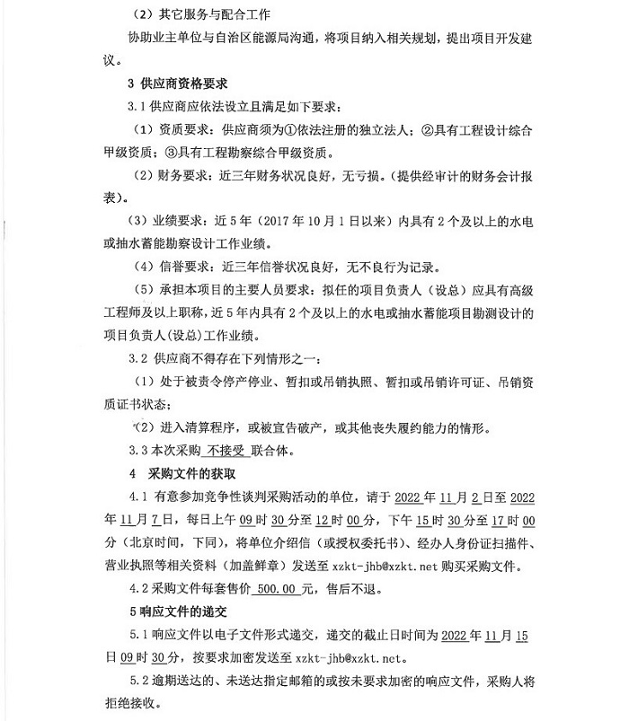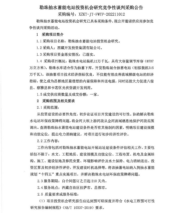 勒珠抽水蓄能電站投資機(jī)會(huì)研究競爭性談判采購公告
