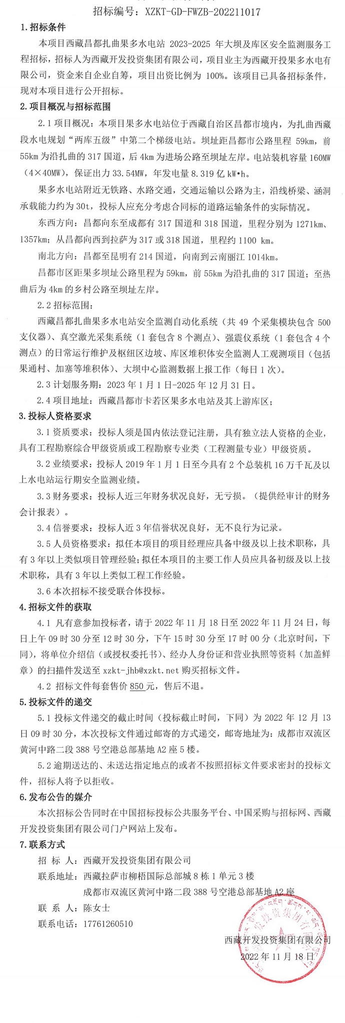 西藏昌都扎曲果多水電站2023-2025年大壩及庫(kù)區(qū)安全監(jiān)測(cè)