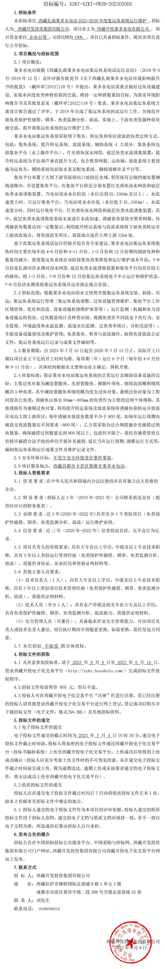 西藏扎曲果多水電站2023-2026年度集運魚系統運行維護招標公告