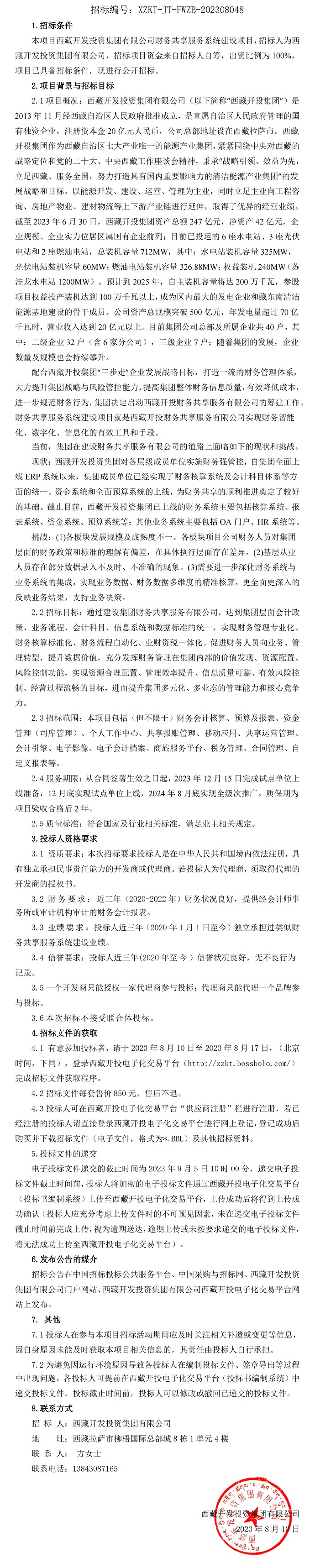 西藏開發(fā)投資集團有限公司財務(wù)共享服務(wù)系統(tǒng)建設(shè)項目