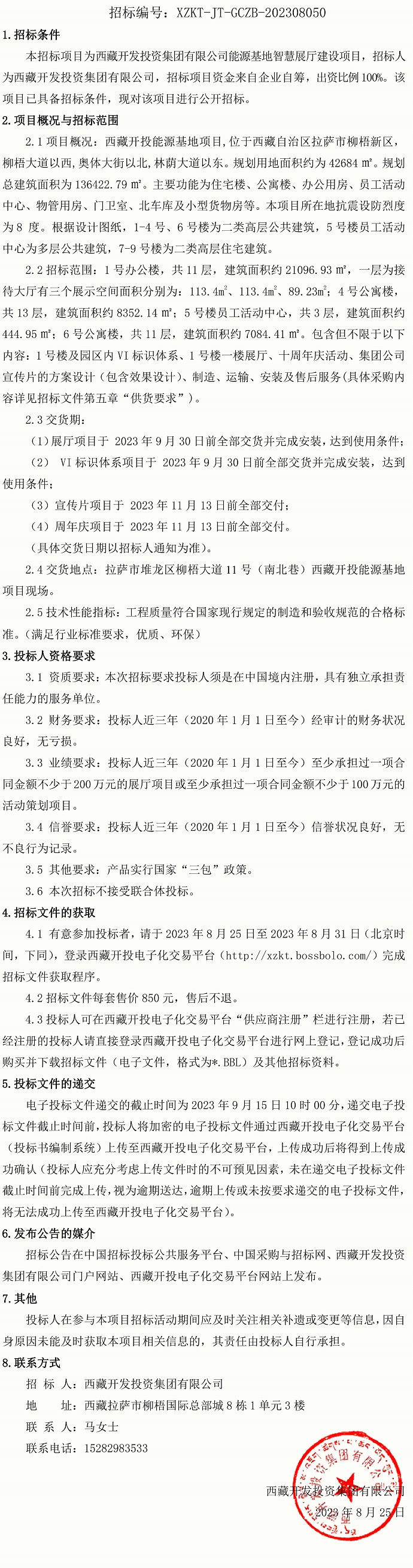 西藏開發(fā)投資集團(tuán)有限公司能源基地智慧展廳建設(shè)項目招標(biāo)公告