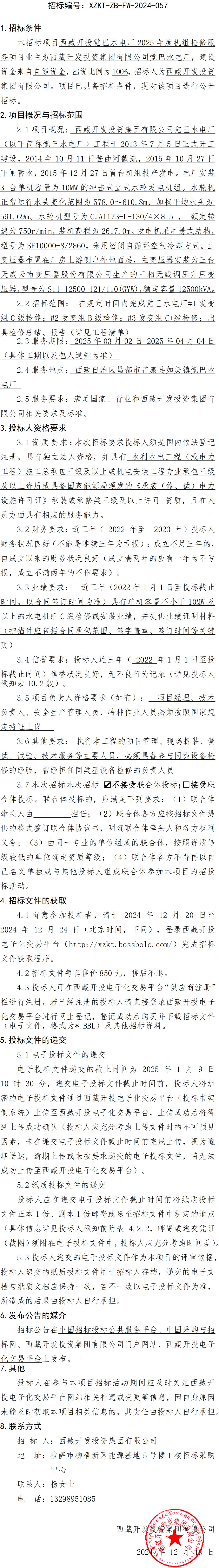 西藏開投覺巴水電廠 2025 年度機(jī)組檢修服務(wù)招標(biāo)公告