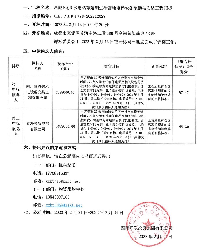 江達(dá)電梯中標(biāo)公示(門(mén)戶)