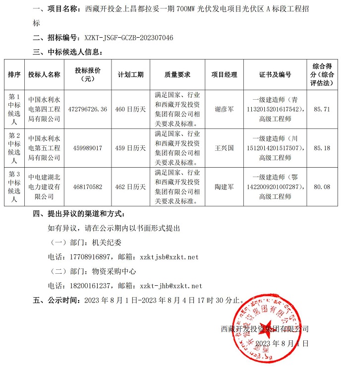 中標(biāo)候選人公示