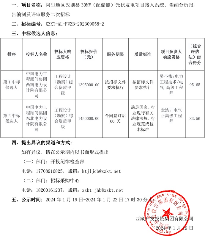中標(biāo)候選人公示