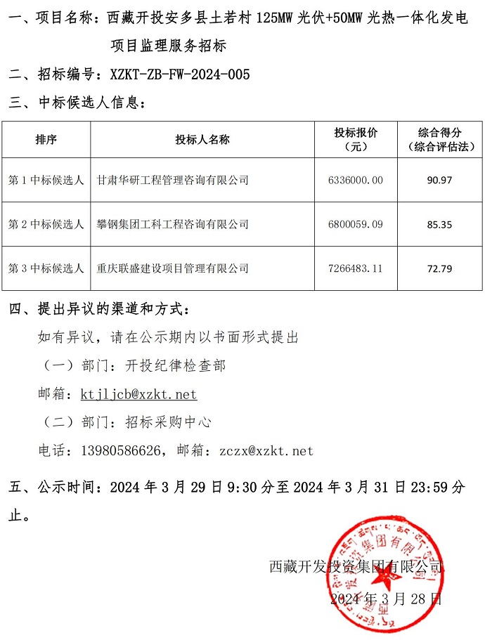 中標(biāo)候選人公示