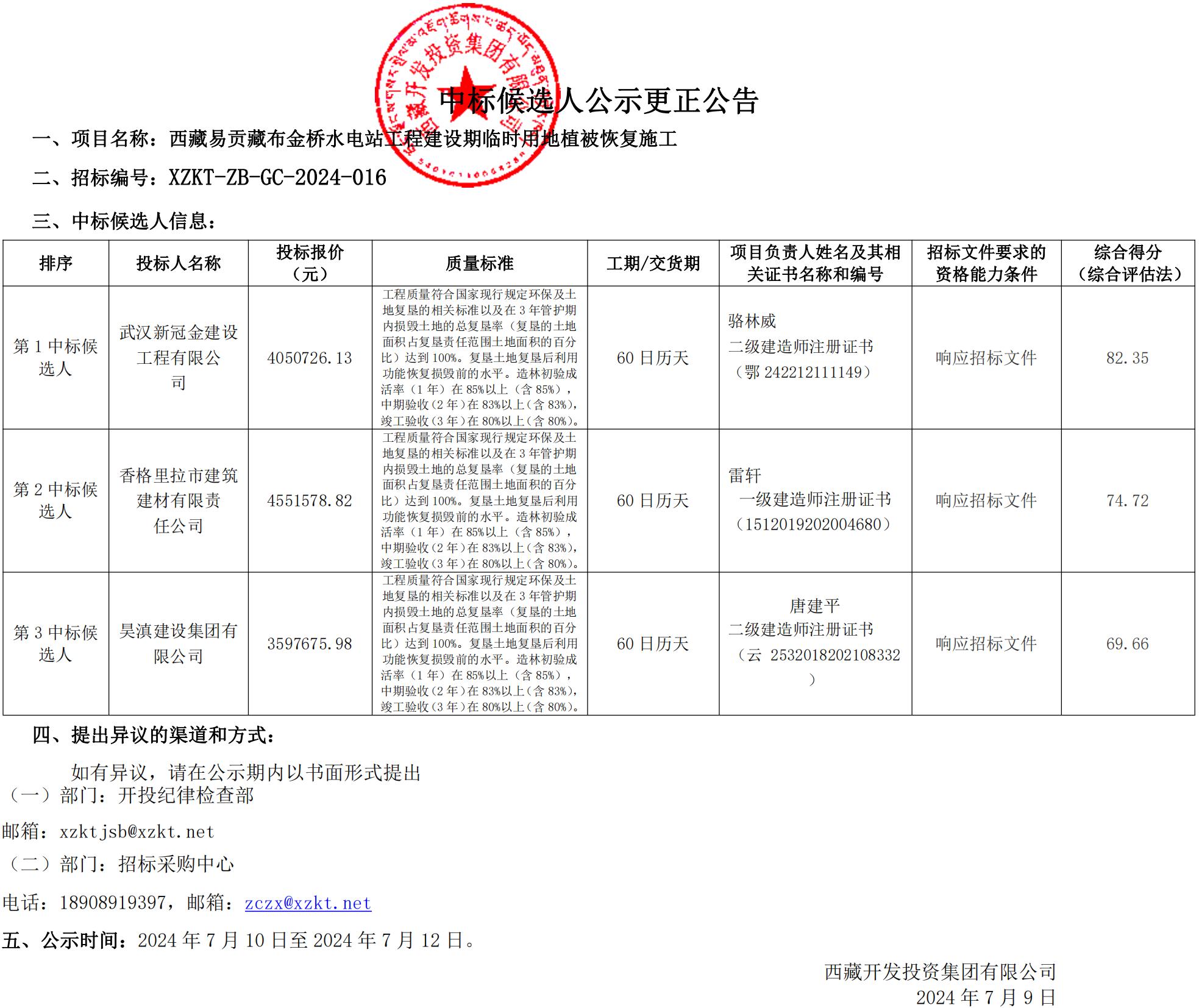中標(biāo)候選人公示更正公告