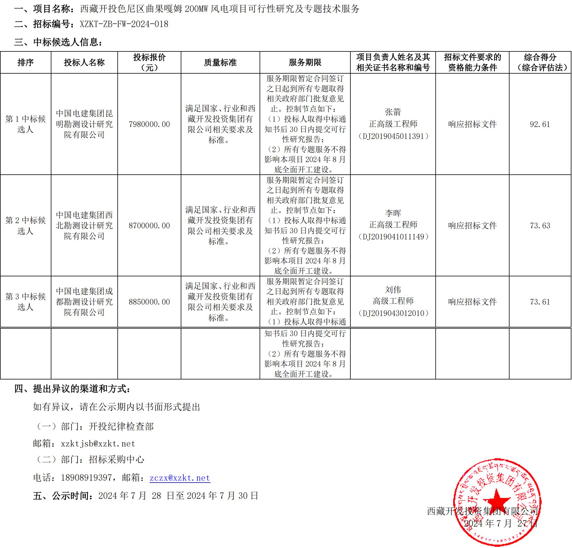中標(biāo)候選人公示