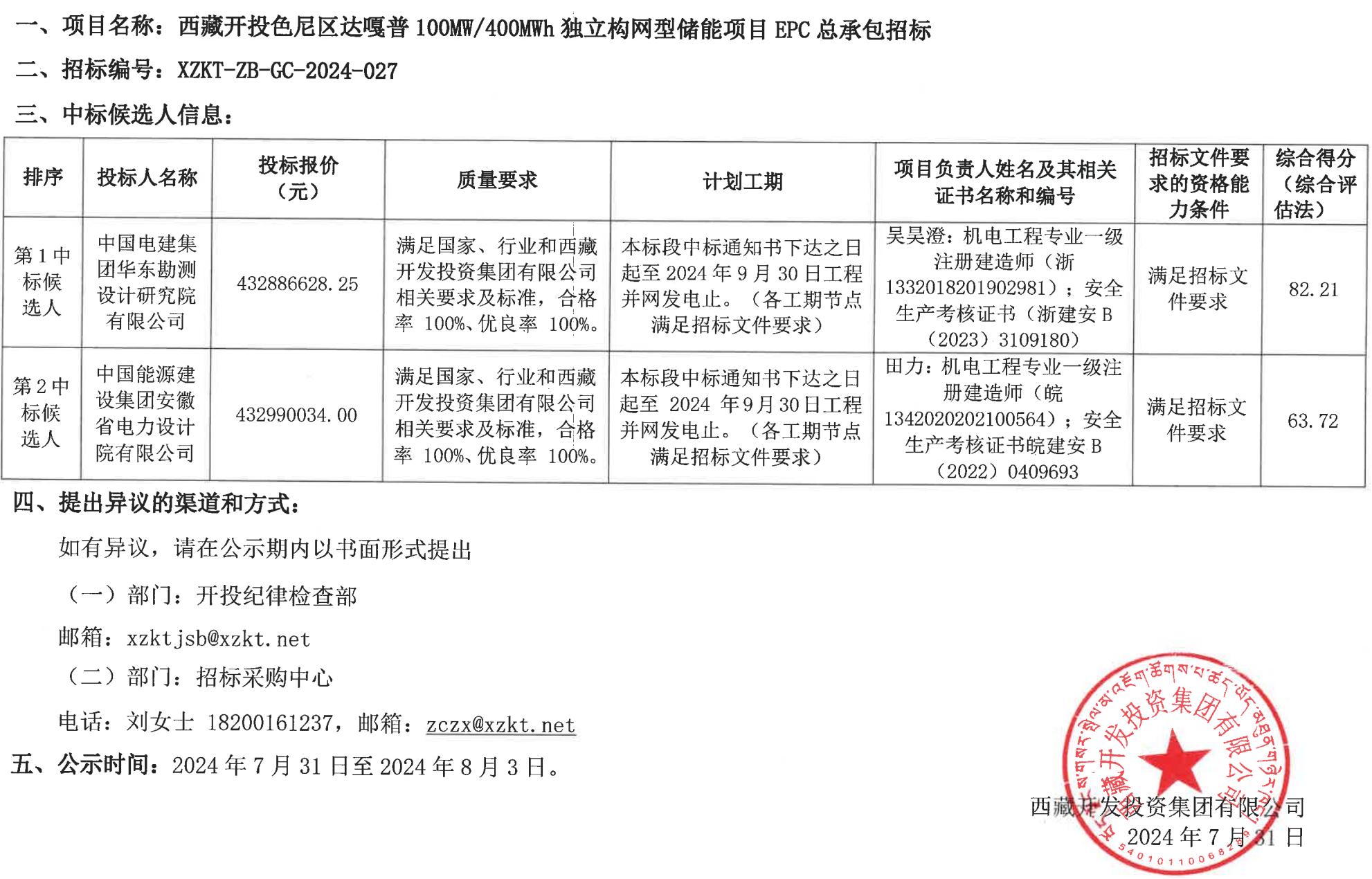 中標(biāo)候選人公示