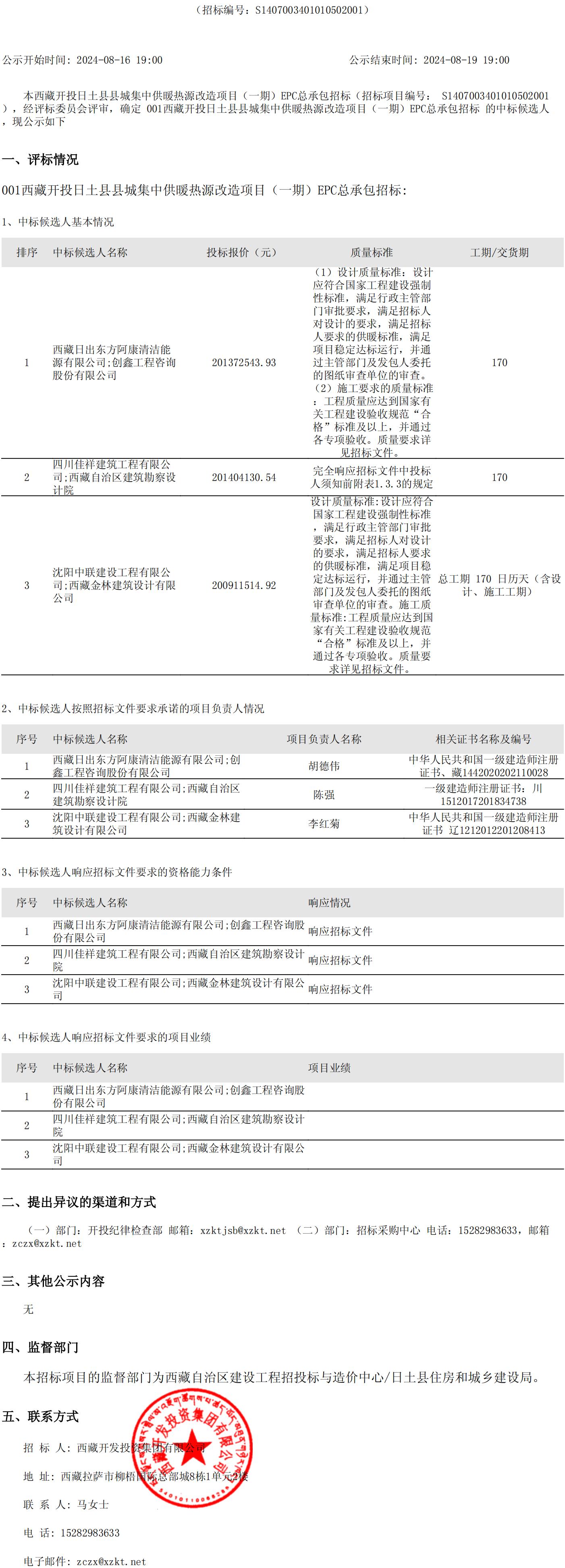 招標項目中標候選人公示