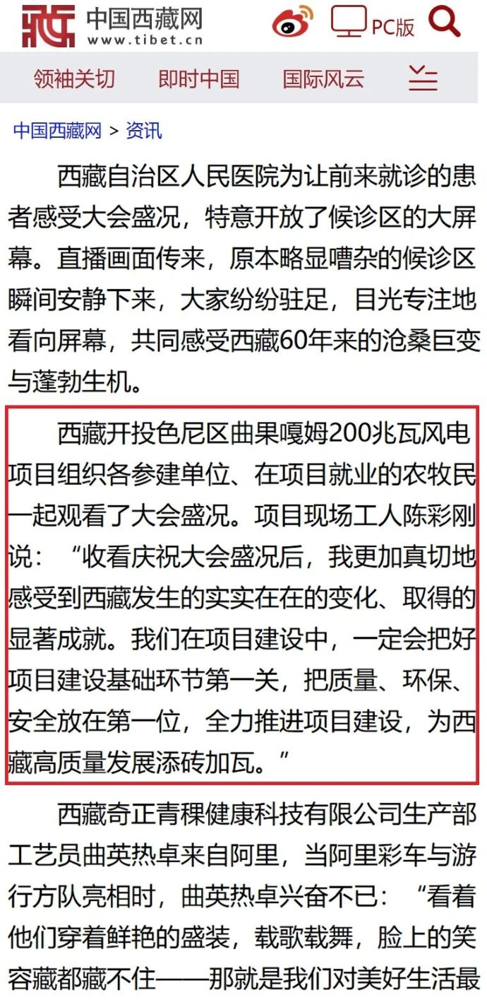 8月22日,西藏開投色尼區(qū)曲果嘎姆200兆瓦風(fēng)電項目組織各參建單位干部職工、在項目就業(yè)的農(nóng)牧民一起觀看西藏自治區(qū)成立60周年慶祝大會盛況的消息,被中國西藏網(wǎng)、西藏日報、中國西藏新聞網(wǎng)、西藏法制報等各級媒體平臺宣傳報道。
