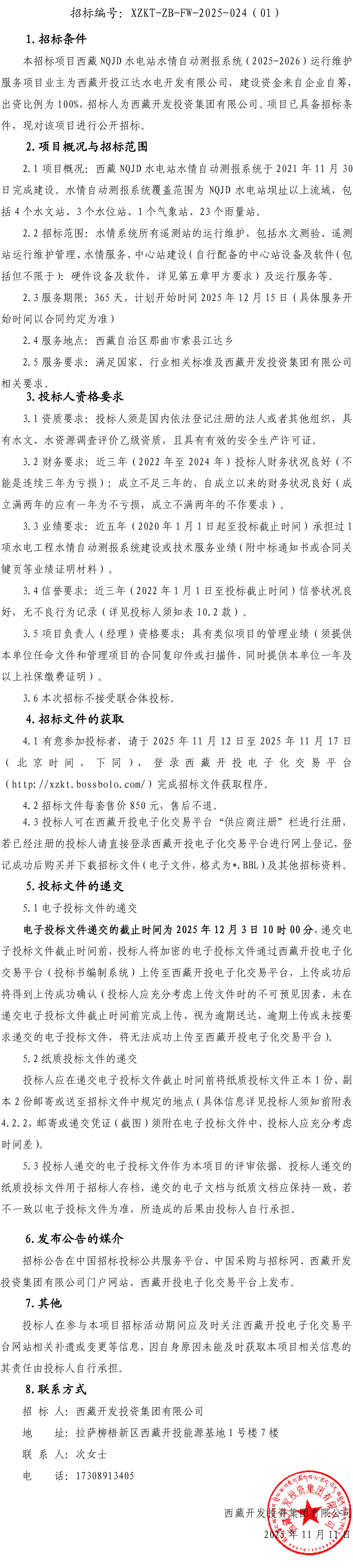 西藏NQJD水電站水情自動測報系統(tǒng)(2025-2026)運行維護(hù)服務(wù)(二次)招標(biāo)公告